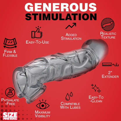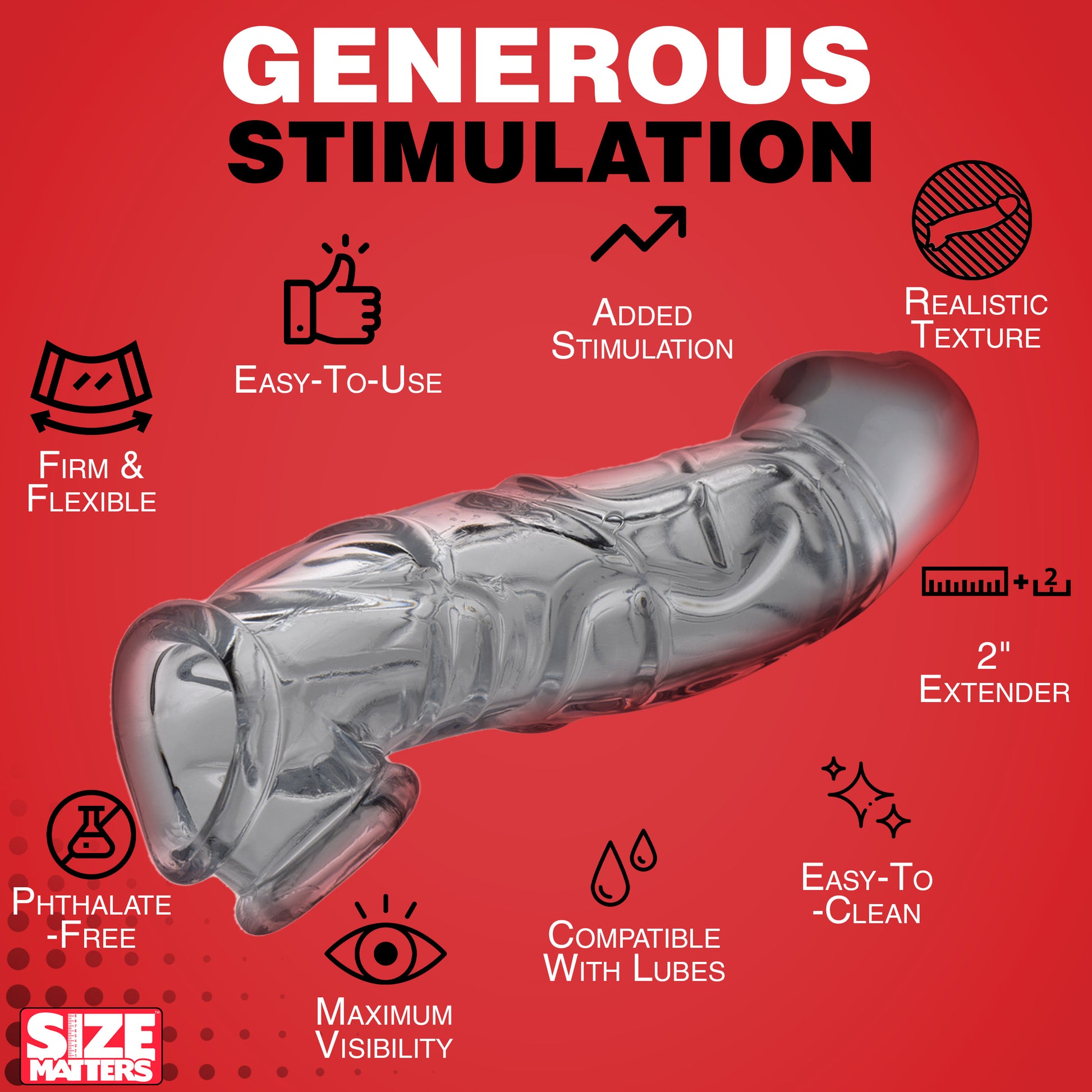 Gain 2 whole inches of dick to fuck your man with when you slide into this hollow sleeve. Not only will you have a longer and girthier tool to work with, but you'll also have exaggerated veins and a huge, curved cock head to hit him in the right spot with every thrust. Meanwhile, with your balls through the scrotal strap, you'll experience that tug that feels so good and makes shooting your load even better!