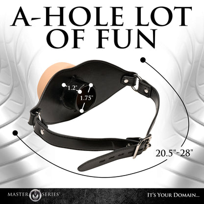 Give your partner something a little different with this Ass Face Mouth Gag! The gag is made to look and feel like an asshole but opens up into the mouth. The outer part of the gag is made out of super stretchy TPE and gives some cushion as you thrust. On the other side is a tube that protects the cock from their partner's teeth and keep's the wearer's jaw open. Adjust the vegan-leather straps with the nickel-free, metal buckles at the back. Clean with warm water and mild soap after use, and use a toy cleaner to spray it afterward. Use with water-based lubricants or water-based flavored lubes for best results.