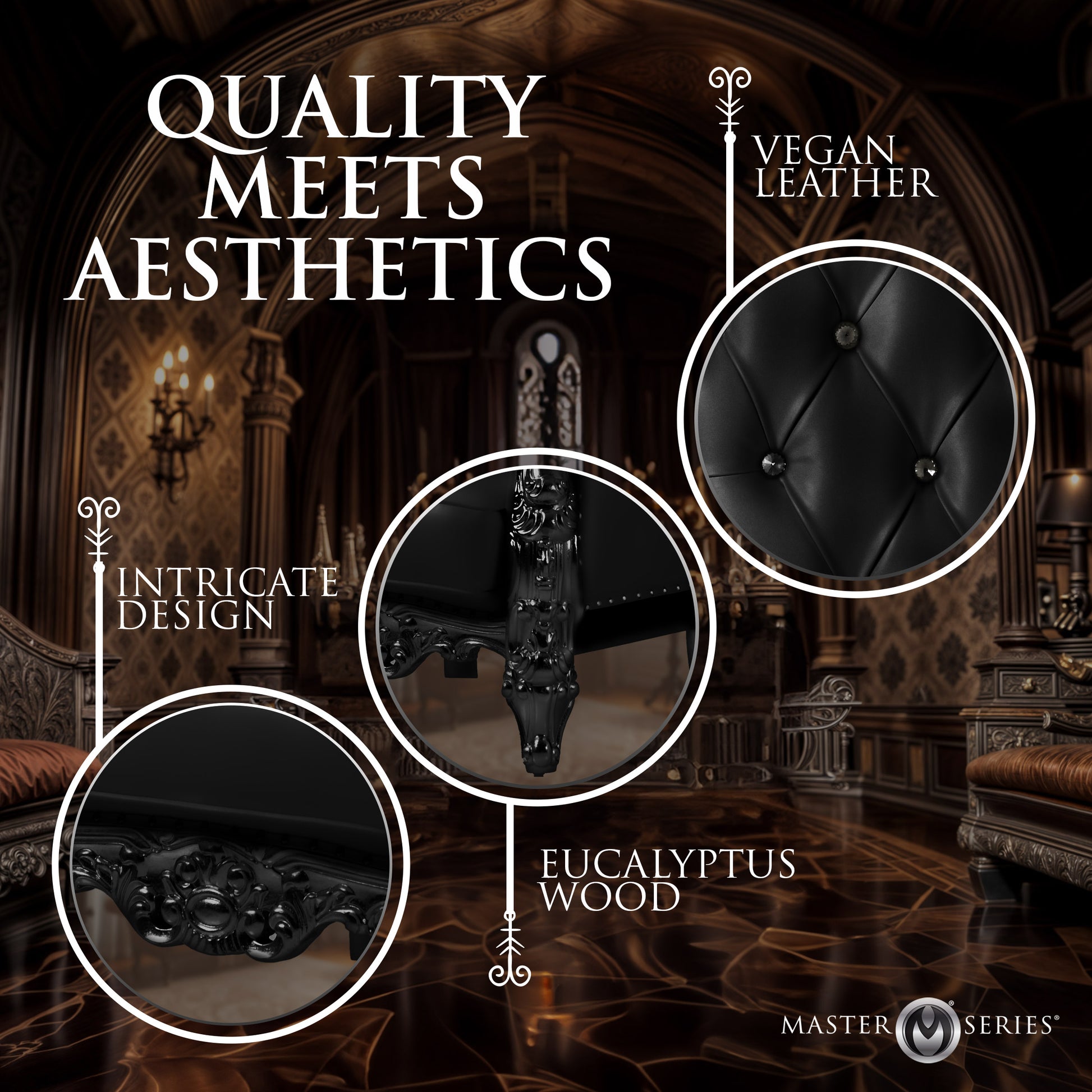 Designed for men who understand presence, the Master Series Throne Chair delivers bold structure and refined dominance in one striking piece. Built on a solid wooden frame and upholstered in smooth black vegan leather, it offers deep cushioning, crystal-style tufting, and a powerful high-back silhouette that naturally elevates whoever sits in it. Whether placed in a dungeon, studio, or private retreat, this chair transforms the room into your territory.