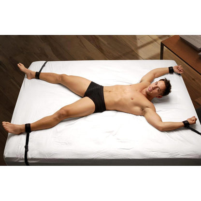 This bed restraint kit makes serious bondage easy and comfortable. Just slide the straps under your mattress, and pull out the cuffs when you're ready to play. The velcro is very secure. You can't pull hard enough to overpower it. Meanwhile the thing fleecy material is comfortable against the skin. It's strong enough to firmly hold down your man, and comfortable and convenient enough for you to break out whenever the moment inspires you.