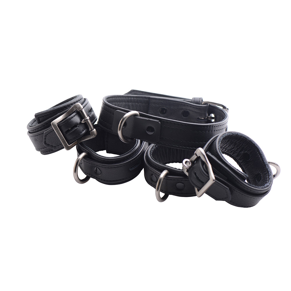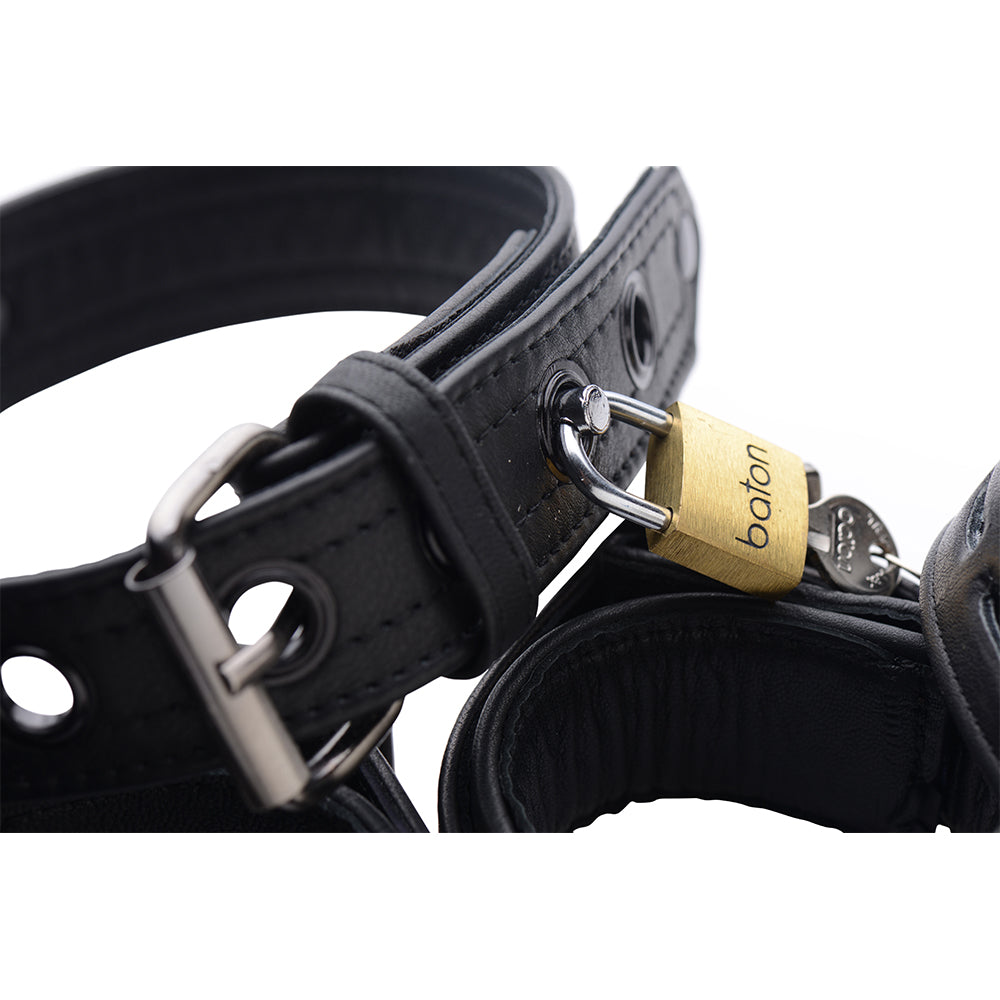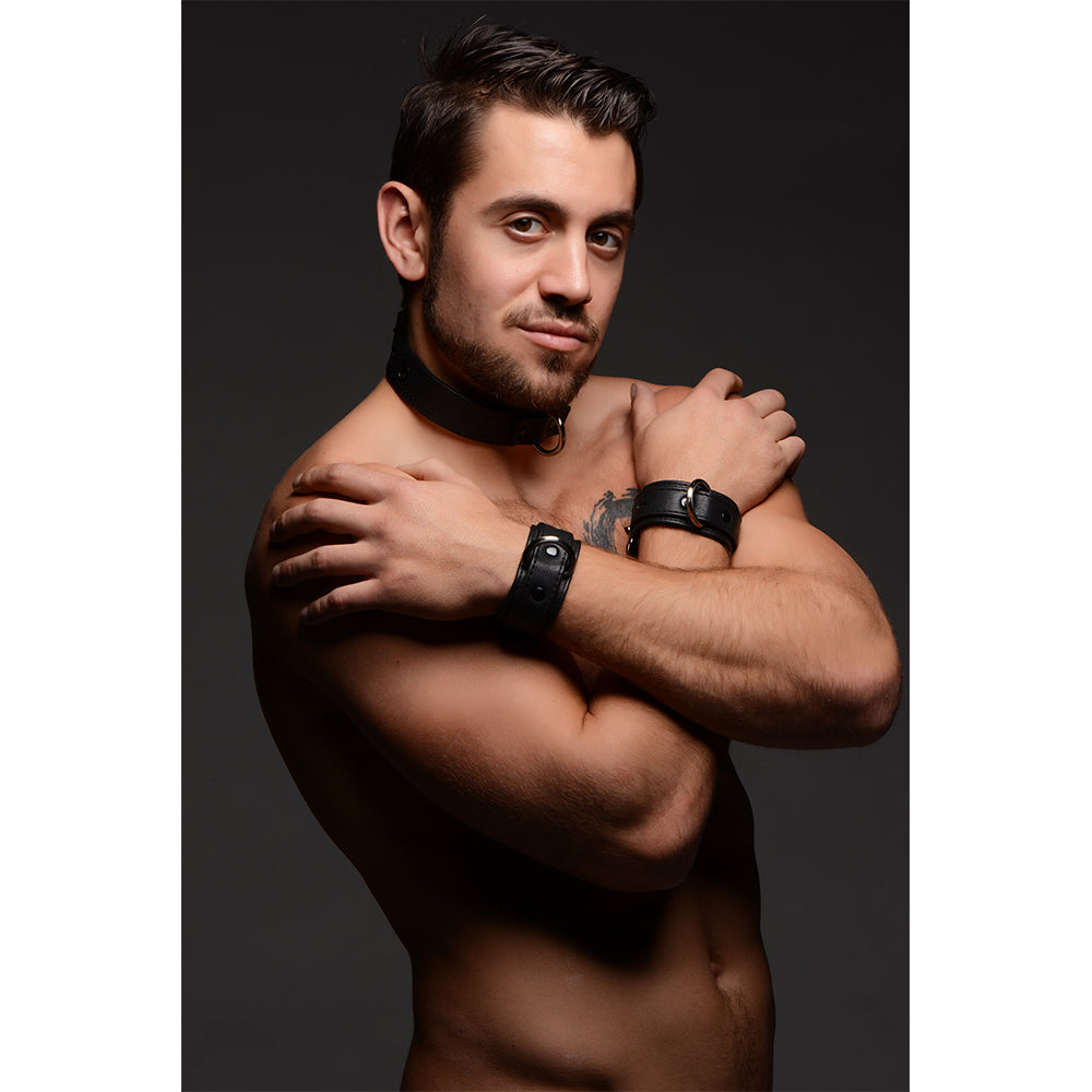 Has your slave earned his place at your feet? Make sure he knows what an honor that is for him by adorning your precious play thing in a sophisticated collar and cuff set. Strict Leather has artfully crafted a handsome, luxurious collar and durable, secure wrist and ankle cuffs for the well-behaved submissive. These essential accessories were designed with exquisite detail in mind, featuring unique locking systems that allow you to keep your pet at your mercy under lock and key. D-rings at the front of each sturdy leather piece provide attachment points for a personalized tag, leash, connector chains, or your favorite devious accessories. These timeless symbols of ownership are comfortable and striking, making them perfect for long-term wear in the privacy of your scenes or out for the world to see. A good slave should reflect well upon his master make sure he looks as impressive and captivating as the man who commands him.