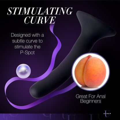 Velvet-soft and petite, this jet black dong is perfect for guys who aren’t used to being penetrated, or those who know that they prefer a smaller shaft. Lube it up and slide the smooth silicone past your tight little ring. The slight curve will subtly brush against your prostate, sending waves of pleasure into you. Suction down the base to a hard, smooth surface to take a ride on it, or strap it into a harness if that’s your thing! This firm, flexible dildo is perfect for use on your own or with a partner. With your ass stuffed, your cock will be rock hard and ready to be stroked, sucked, or even fucked!