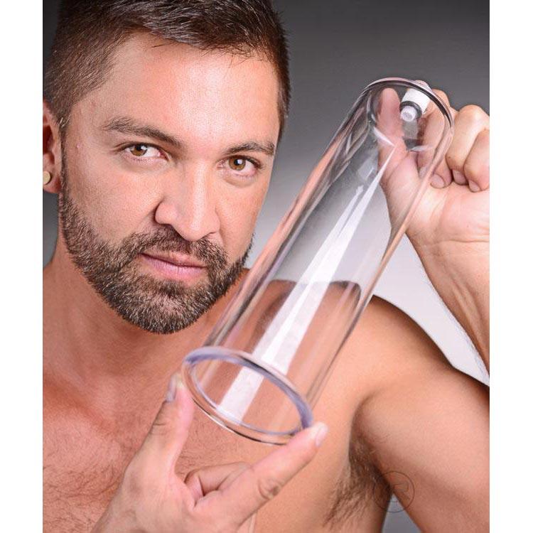 You've never been sucked harder than this! Attach a pressure-gauged hand pump to this cylinder and feel your cock and balls increase in size and sensitivity. Remove the pump to leave your shaft and scrotum suctioned tight in the cylinder, or remove it all with the easy-release valve to have complete access to your thick, veiny wood. Imagine fucking a tight ass with your ultra-sensitive and massive cock! Your balls will be heavy and responsive to even the lightest touch. You'll cum hard from this toy, whether you're masturbating or giving it big and hard to your partner.