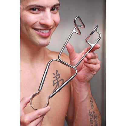 Into medical play, or just interested in seeing what's inside your man? Stretch him wide open with the Dartigues Retractor Medical Hole Spreader, an anal speculum that goes wider than ever before! Excellent for guys who like a huge cock inside them, this device spreads an orifice from anywhere between 2 and 6 inches! Spread him open and stuff whatever you want up there!