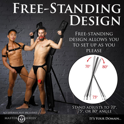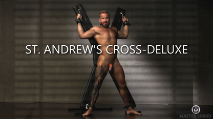 For all true sadomasochists and kinksters, the St. Andrew's Cross is a must have in any dream dungeon! Make the dream a reality with this sturdy, light-weight cross! This free-standing cross can be placed on any flat surface and adjusted from 70 to 80 degrees so you or your submissive can lean on it, clutching at the cross, as they take an intense beating for your sinister pleasure! The padded, vegan leather covered cushions are comfortable and absorb impact as the 47 lb cross handles every moment of intense place. Made out of iron and wood, it's built to last through your harder sessions. To clean, spray it with a gentle cleaning solution and wipe with a soft cloth.