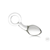 This smooth and slippery plug maxes out and nearly two inches in diameter and penetrates over three inches deep. The ring is big enough for you to slip two fingers through. You can easily move it around inside of yourself or just wear it around, feeling it move on its own. If you enjoy the smoothness of glass, but want a more challenging toy, this plug is for you.