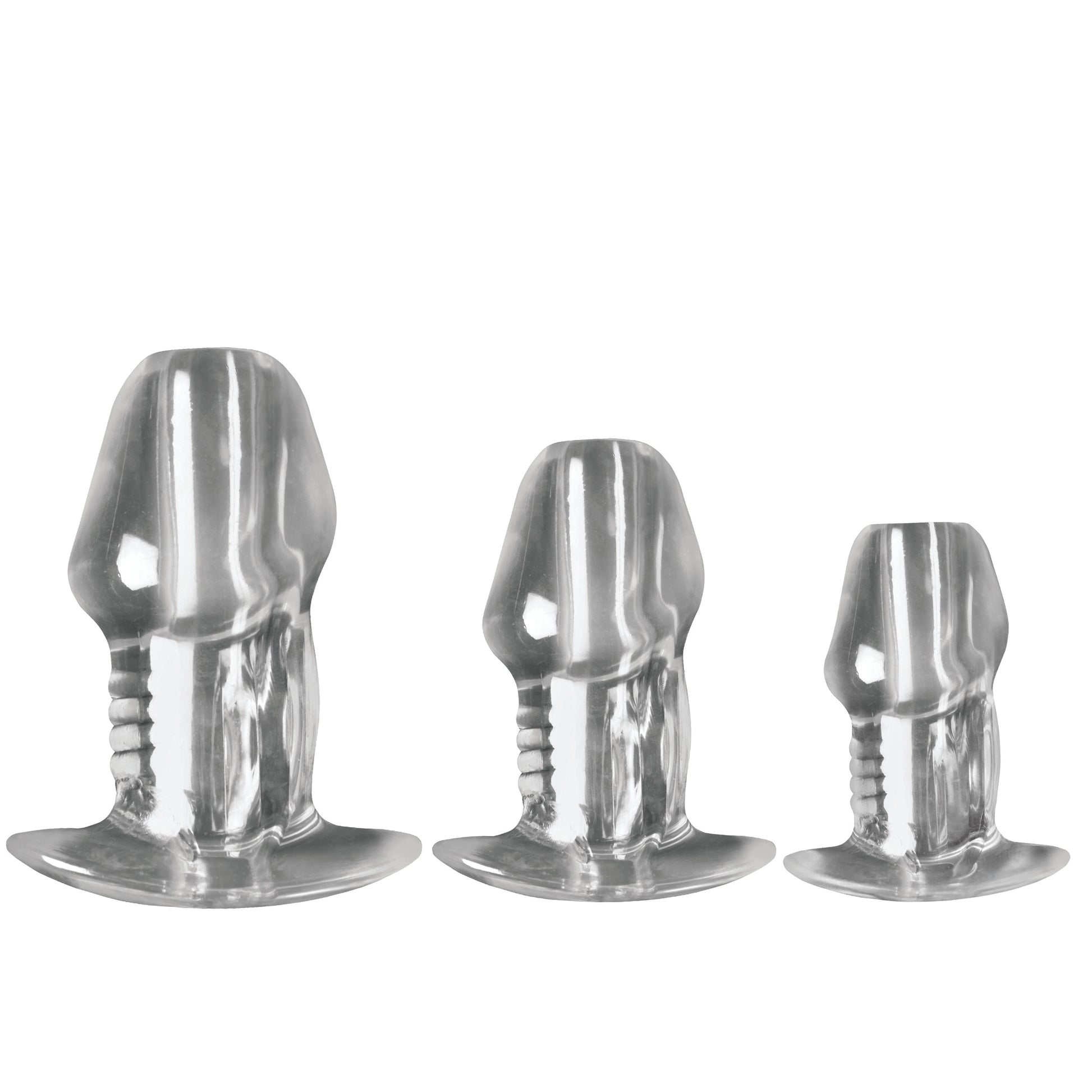 Take bold steps into uncharted territory with the Dicked Clear Hollow Anal Plug. For those who know no limits, this plug offers everything you need to elevate your anal play. The hollow core invites endless creativity—fill it, stretch it, and see every thrilling moment. Fuck it, shine a light in it, put your partner upside down and pour some fluids inside, or turn them into a human vase. Its tapered tip takes the stress out of insertion, while the sturdy flared base ensures it stays exactly where it needs to be without any nasty trip to the hospital for a rectal foreign object. Made from durable, phthalate-free rubber, this plug puts safety and performance first. You're playing it safe while playing hard! Add your favorite silicone or water-based lubricant, and you’re ready to go. This is the gear you’ve been waiting for—don’t settle for less.