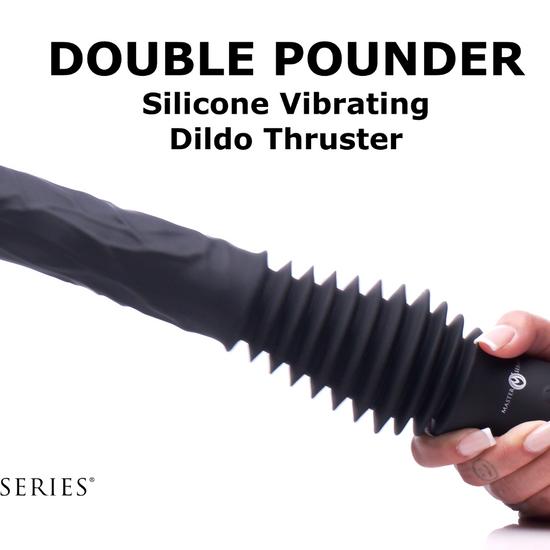 Get fucked hard, long, and without interruption with the Double Pounder Silicone Vibrating Dildo Thruster! Realistic shape and feel give you the cock you want with a smooth, black, silicone skin that glides right into your ass. Are you an insatiable whore wanting to fill your hole and get pounded for hours? This is the perfect toy for you. Great for exhibitionists who want to put on a show, or for those who just like to be a lazy Dom and fuck their tied-up little pigs without having to do the extra work.