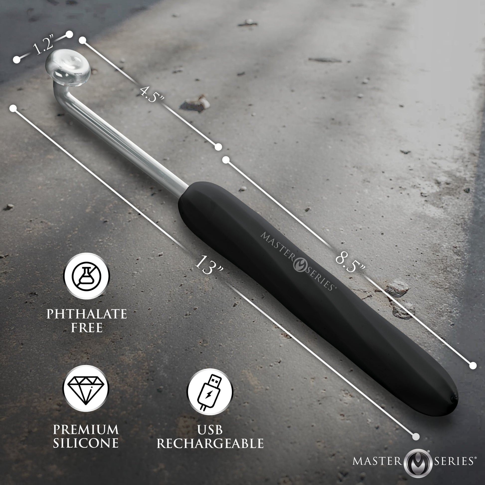 Tired of toys that don't excite you or your partner? The Elektra Rechargeable E-Stim Wand offers a fresh thrill that will electrify your play! With 5 adjustable levels of e-stim, you’ll shift effortlessly from light sensations to thrilling intensity—tailored to your desires. This exciting wand slips into any scene effortlessly. Crafted with a smooth, ergonomic silicone handle for ultimate control and comfort, this cordless wonder empowers your dominance and heightens your submissive's senses. Plus, its rechargeable design ensures the fun doesn’t have to stop. Reimagine what your nights can be. Take charge today!