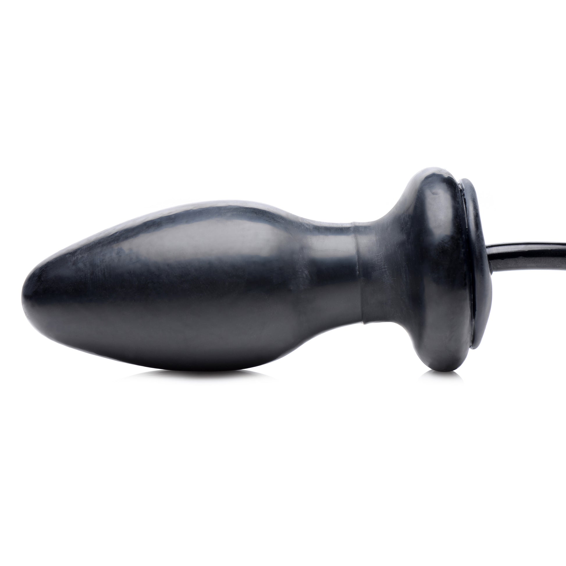 This butt plug has a firm interior, so it's easy to insert, but once in, it's free to grow. With every pump of the bulb the latex skin will expand. It can reach up to 4.5 inches wide, and 6 inches long. Of course it will adjust to best fit inside of you. If you've hit your limit you can rapidly deflate the plug by hitting the release valve button. Inflatable toys like this are a great way to push your limits, one pump at a time.