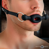 Jam this ring between his teeth, lock the strap behind his head, and his mouth is a forced-open hole that belongs to you until you unbuckle it. The FORCED Silicone Feeding Gag shoves a thick silicone ring inside his mouth and holds his jaw pried apart so he cannot close it, cannot bite down, and cannot do a single thing except kneel there with his mouth gaped open while you decide what goes in it. The tapered opening funnels from 0.9"" down to 0.6"", sized perfectly for shoving your cock through, feeding him whatever you want, spitting through the hole, or just making him drool and gag on nothing while you stand over him and take your time. The black silicone strap wraps around his head and the locking steel buckle clicks shut at the back where he cannot reach it. Steel ring accents make this gag look as brutal as the scene you are about to put him through. Once it is locked on, he kneels there with his jaw forced wide and his mouth completely at your mercy. He can moan. He can drool. He can choke. He cannot speak, he cannot close his mouth, and he cannot stop you from using that hole however you want. Strap adjusts from 16.5" to 24" so it locks tight on any guy's head. Nickel-free, phthalate-free, and comfortable enough on his teeth and lips to keep him gagged through the entire session.