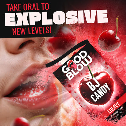 You pour the candy on your tongue and feel the stimulating fizzing and pops immediately. You reach for your partner, wrap your mouth around them, and enjoy giving them the feeling of fireworks on their cock! Elevate your taste experience with Good Blow Popping Candy! Indulge with explosive cherry flavor that makes your mouth water! Experience the fantastic stimulation of popping and fizzing sensations that bring back nostalgic memories. And when it comes to oral fun, expect nothing less than exceptional – let the tingling, popping thrill turn up the heat!