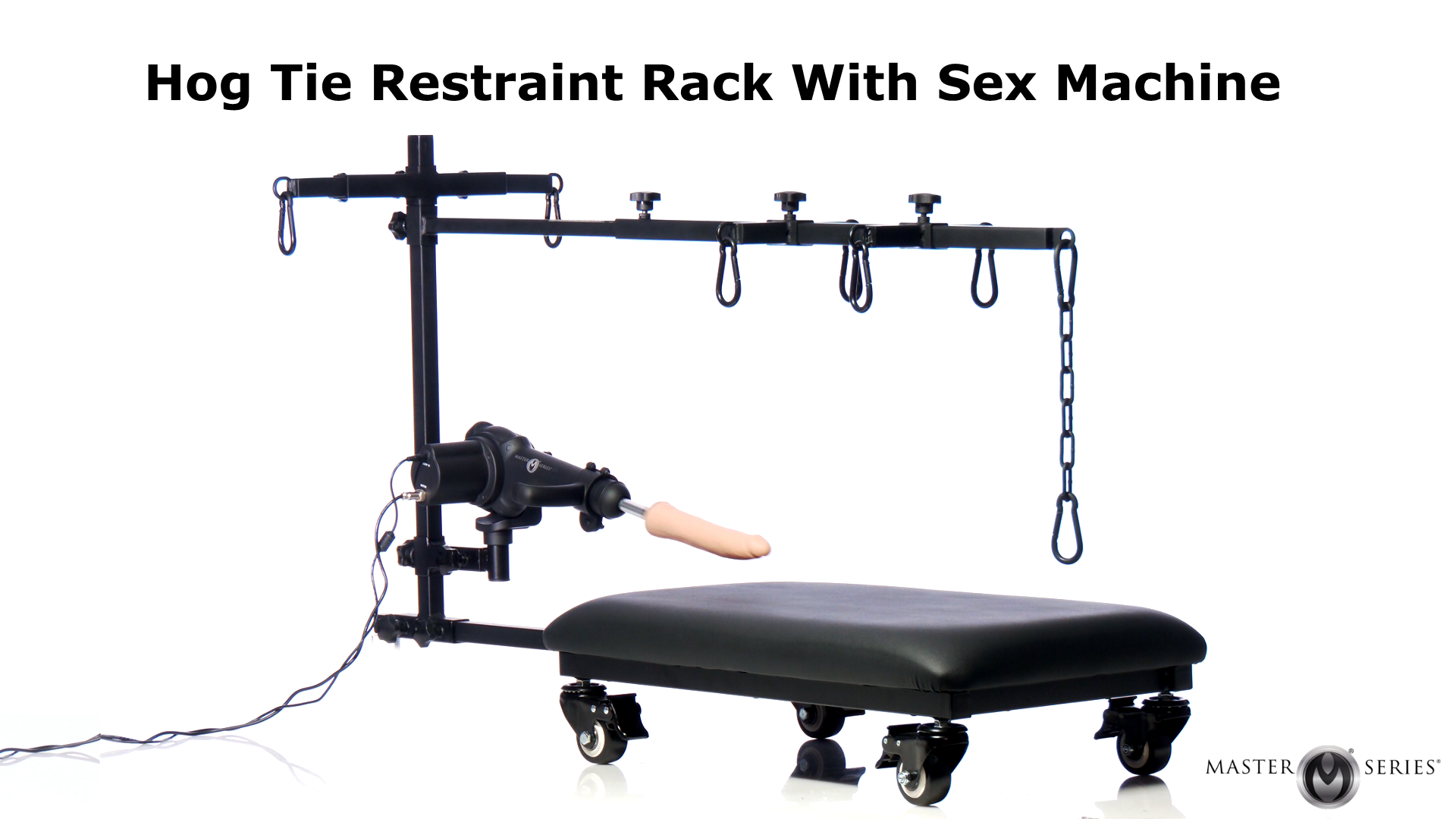 Built on a sturdy, heavy-duty steel frame with a supportive, padded platform, it promotes endurance during longer sessions. Unlock infinite positions with adjustable upper arm and wrist restraint tubes that fit diverse body types. Plus, its horizontal rails slide for exact length and height tweaks. Discover your partner’s sensitive sweet spots with Hogtie Restraint Rack!