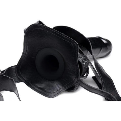 Slick up this smooth, but veiny man meat and slide it into your man's fuck hole! This strap-on is designed for male use, with a hole you can put your cock through. You don't even need to have an erection to pound your man! This massive, curved shaft aims for his prostate as you stuff it into him! Adjustable straps around the waist and up the asscrack make this a one-size-fits-most harness. The O-ring gives you the option to change out for another dildo whenever you want, or use this one without the strap-on harness.