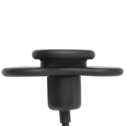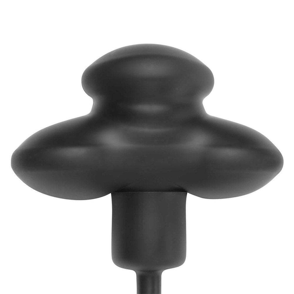 The smaller portion fits behind the teeth and the wings are stuffed behind the cheeks. Once you start pumping the wings stiffen, making it too big for him to spit out. Eventually it grows to the point where his cheeks are straining and he has no choice but to submit to you.