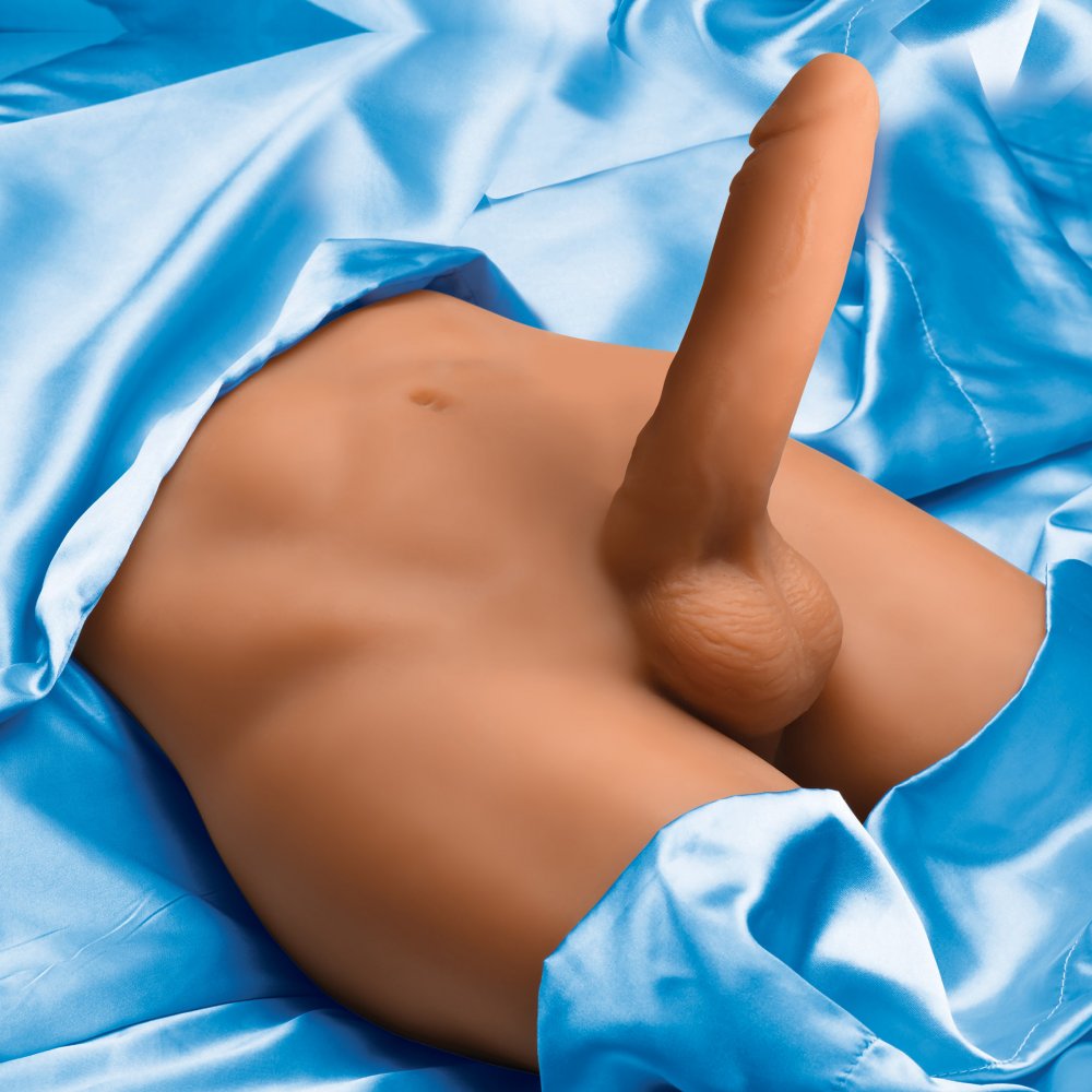 Your ultimate dream-boy is here! With a textured anal canal and a thrusting, self-warming, vibrating dildo attached to sculpted abs and firm thighs, you've got the perfect masturbation toy! He's easy to use, easy to store and easy to enjoy! This quality toy is made from premium BioSkin TPE and has a realistic look and feel. The sculpted torso make riding him sexy and comfortable while adding some tactile realism to your fantasy fucking! The 7 inch silicone dildo connected at the hips has 7 thrusting modes and 10 vibrating modes plus a warming function! Use the remote control to switch between settings with ease. When you're ready to switch from bottoming to topping, slide your cock into his grippy, textured anal canal and enjoy the massage as the nubs grip your shaft with each deep stroke. Warm him up beforehand by using the warming wand, then slip some lube and the vibrating bullet inside to add sensation and buzz the top of your head! Afterwards, use the cleaning kit provided to freshen him up for next time.