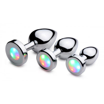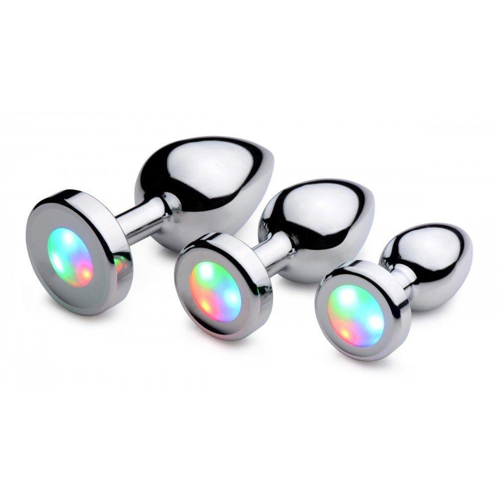 Perfect for a night out or a night in, this plug will shock and delight all who discover it flashing between your ass cheeks. Choose your size: small, medium, or large. The sleek metal goes in smooth with a tapered design and a narrow stem that allows comfortable wear for hours.