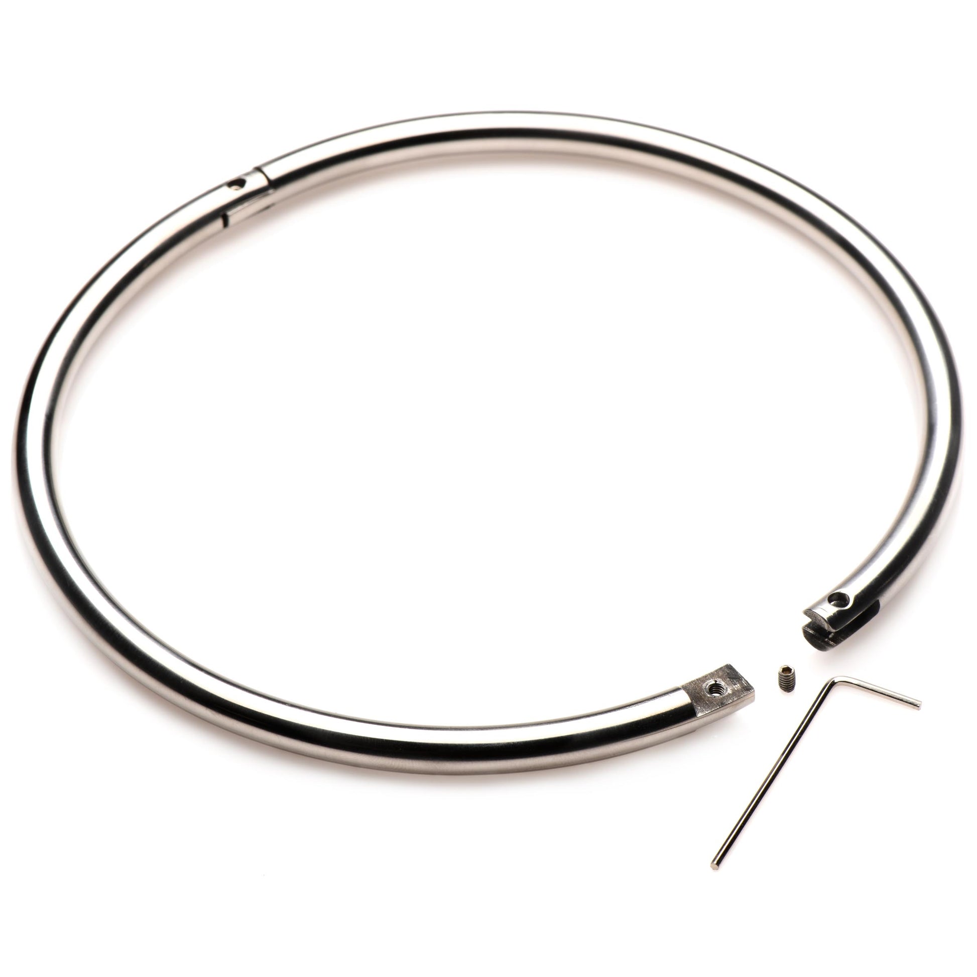 When you've got a Sir or Daddy Dom who wants to give you their protection and direction, being collared by them can feel like the very best of their love and attention! Part-time collars for scenes are sexy; full-time, locked into service and submission collars are a whole new level of D/s relationship. This sexy collar can be used personally to lock yourself up, become your own Dom or simply enjoy it for fashion… or it can be used as a powerful symbol that your Dom gives to you! Made of stainless steel, it is nickel-free for sensitive skin types and non-porous. Extremely durable, it can be worn in bathtubs, hot tubs, showers, hot springs and of course during rough, wild, wet sex as well. The collar comes in different sizes, so make sure to get the one that fits you best! Use the hex key to lock the collar into place and hide the key somewhere safe. You'll love the way the metal feels against your neck!