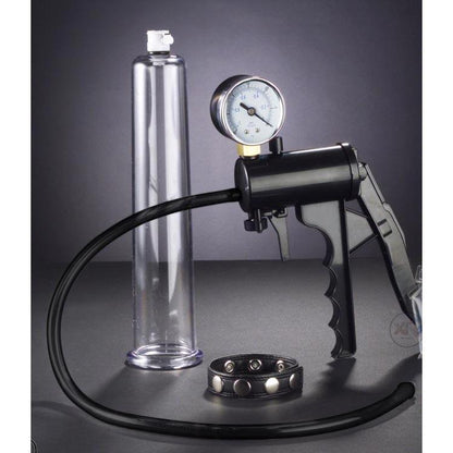 The SMP Premium Penis Pump set was made for those looking for a quality pumping gear at a solid value. The set comes complete with Deluxe Hand Pump with Pressure Gauge, your choice of cylinder and a leather cock strap. Also includes an instructional pumping guide to get the most growth out of your equipmentThe heavy duty guage pump incorporates a pressure release valve that can be easily accessed with a finger to provide quick release. Works with all the cylinders and pumping accessories we sell.
