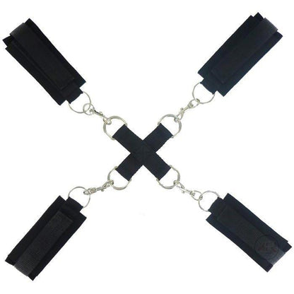 Just fit the nylon and neoprene cuffs tight around his wrists, lay him on his front, and hook the four clips up to the cross restraint piece. You'll have your partner right where you want him. Other than hog tying your partner, every piece of the kit is easily integrated into other bondage scenarios.