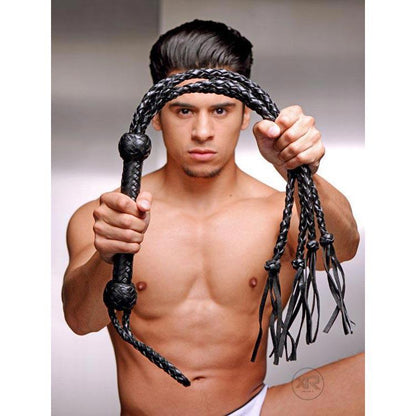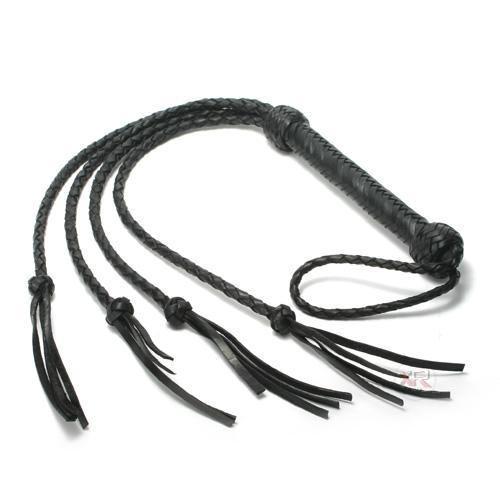 Reach back and give them a lashing like never before! Made from garment leather with a braided design, this three foot whip is unlike anything else. Once the handle ends, you will find there are four lashes, instead of one, each of which splits up again at the tip into more smaller lashes! Let the punishment begin for your little bad sub.