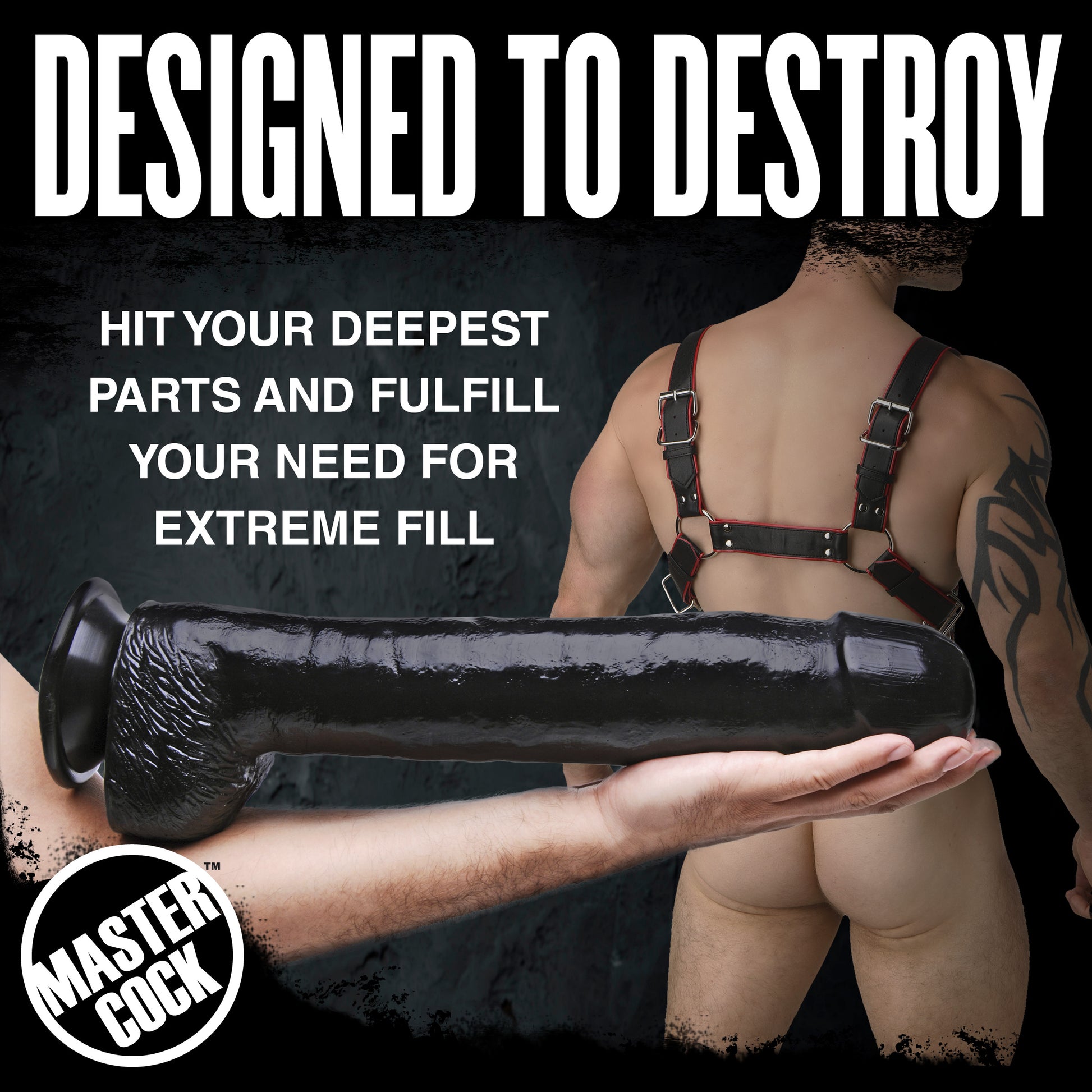 Weighing in at 4.5 pounds, the Black Destroyer is a heavyweight in the world of huge dildos. If you can take its head, you can slide down 12 inches before you hit balls. Standing at full height, it's 16 inches tall from tip to suction cup. That suction cup is actually strong enough to support this monster, even when stuck to a vertical surface. Just make sure that you don't pull any tiles off your wall while riding this thing!
