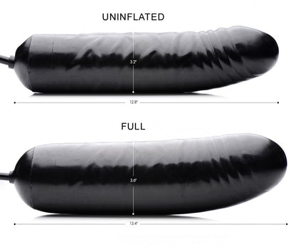 The XXL Inflatable dildo starts off big and gets even bigger and harder. With no air pressure, it starts off over 3 inches wide. As you pump, it will get bigger and bigger. It's total circumference will grow from 9 3/4 inches to 11 1/2 inches around. With each pump it will open you up a tiny bit more.