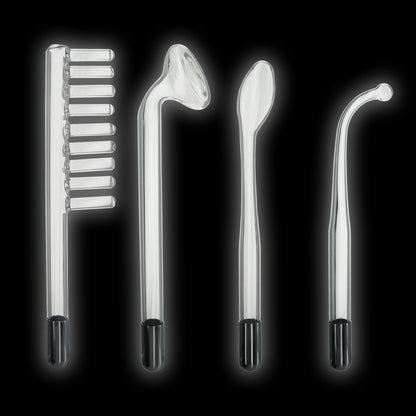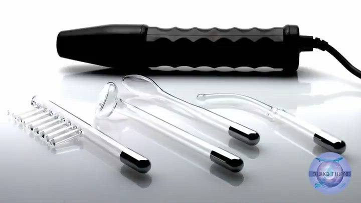 The Twilight Wand is the ultimate in visually stimulating sensation play. Turn on the power move the wand closer to your partner's skin. As it approaches it will start to glow brighter and then start arcing tiny static sparks between the glass wand and the skin. Depending on the power, these can feel like a slight tickle, or like little pin pricks. Every glass attachment adds a different feel and pattern of stimulation. The Twilight Wand works like a conventional violet wand, but is solidly constructed and a little gentler.
