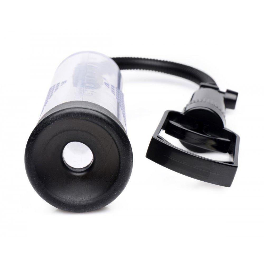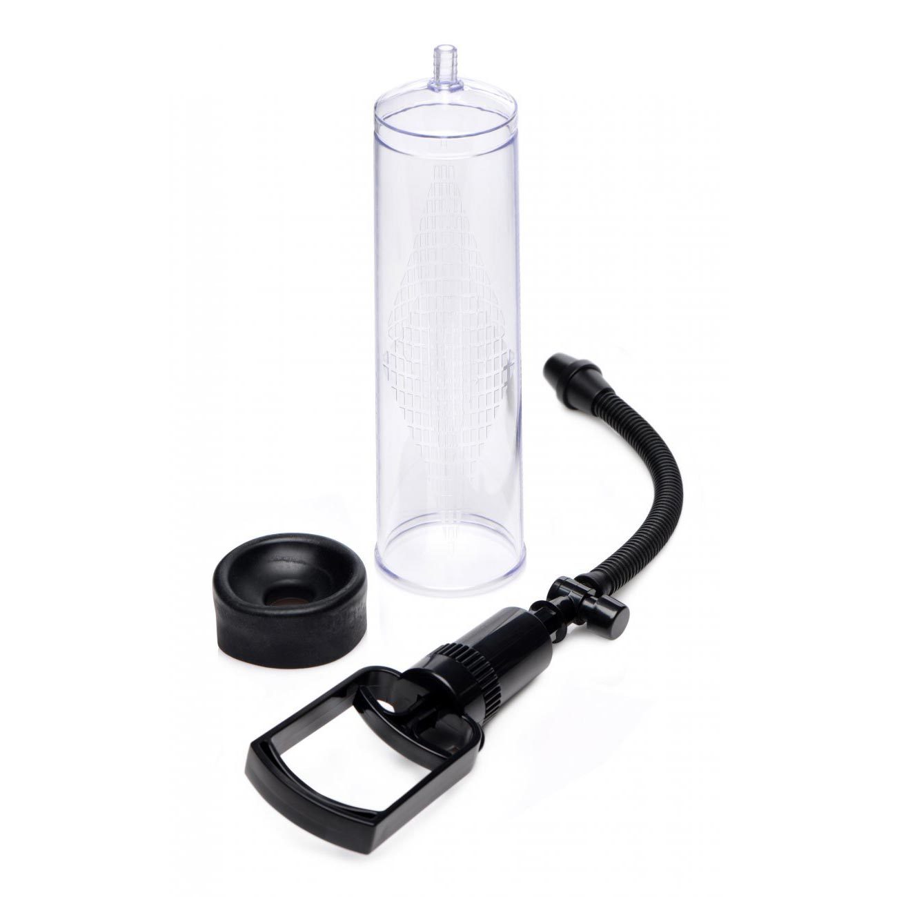 Lube up and slide your cock through the tight seal of the silicone sleeve into the cylinder. The grooves along the outside ensure that you can maintain a firm grasp while your cock grows inside. The hose leads to a trigger handle that is easy to operate. Just squeeze and pressure will build inside the cylinder, drawing blood flow into your dick for increased size, stiffness, and sensitivity.