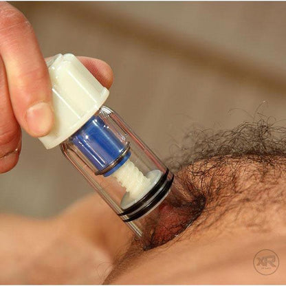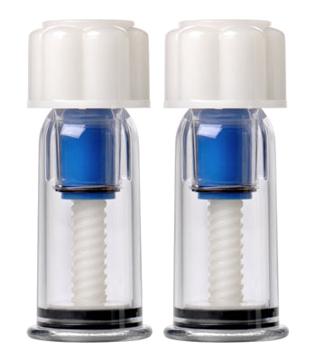 The Twist Up Nipple Suckers are great for adjustability and visual appeal. Sure you can use them to simulate a gentle sucking, but if you crank them way up, you can see your nipples pulled up into them. Some guys will do it for the immediate sensation, and some guys will do it for the swollen sensitive nipples that they leave behind after your remove them.