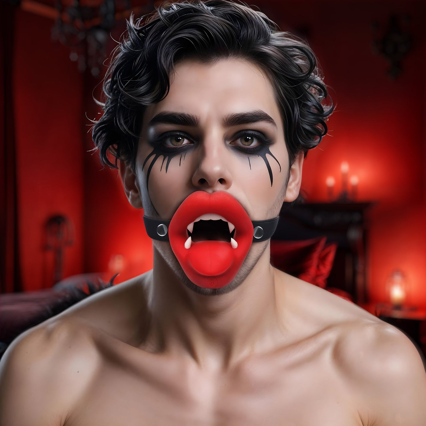 Vampire Fangs and Big Lips: Enjoy the aesthetic of large, luscious lips and sharp-looking fangs, and a gag to keep the mouth open!