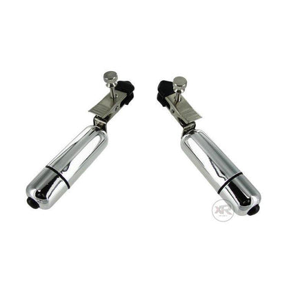 Finally, a powerful one touch vibrating wireless sex toy. These silver babies will shake practically anything you attach the clamps to. Easy to use, just unscrew the egg to remove the battery seal then apply the cover. Now just press the little black button. The rubber coated clamps are adjustable to achieve the desired pressure. Can also be a lot of fun attached to the scrotum, penis and other very sensitive areas of the body. Measures 4 inches long by 1 inch wide.